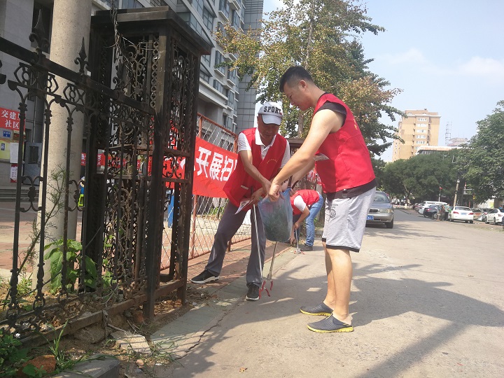 参加活动的党员志愿者们在市侨联副调研员杨丽萍,市工商联副调研员林荣忱、张日东的带领下,统一着装,佩戴党徽,带着垃圾钳、垃圾袋等工具,与交建里社区副书记苏叶翠等工作人员一起沿着政廉街清理沿途的垃圾、杂草。大家不怕脏不怕累,时刻保持一名共产党员的初心,利用休息时间把社区打扫得干干净净,美化城市环境的同时,提升了自己思想境界。