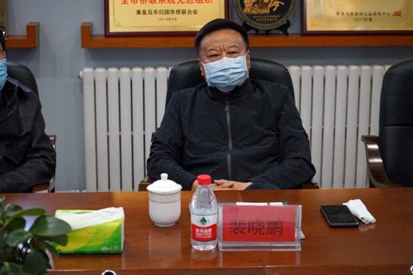 4月24日上午,秦皇岛市政协副主席裴晓鹏、港澳台侨和外事委员会主任李成彬到市侨商会进行调研。市侨联党组书记、主席胡玉英,市侨联副主席刘洪波和市侨联四级调研员杨丽萍陪同调研。